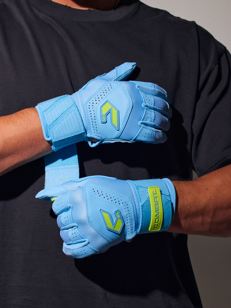 COMBAT MFG Long Strap Batting Gloves, Blue Horizon