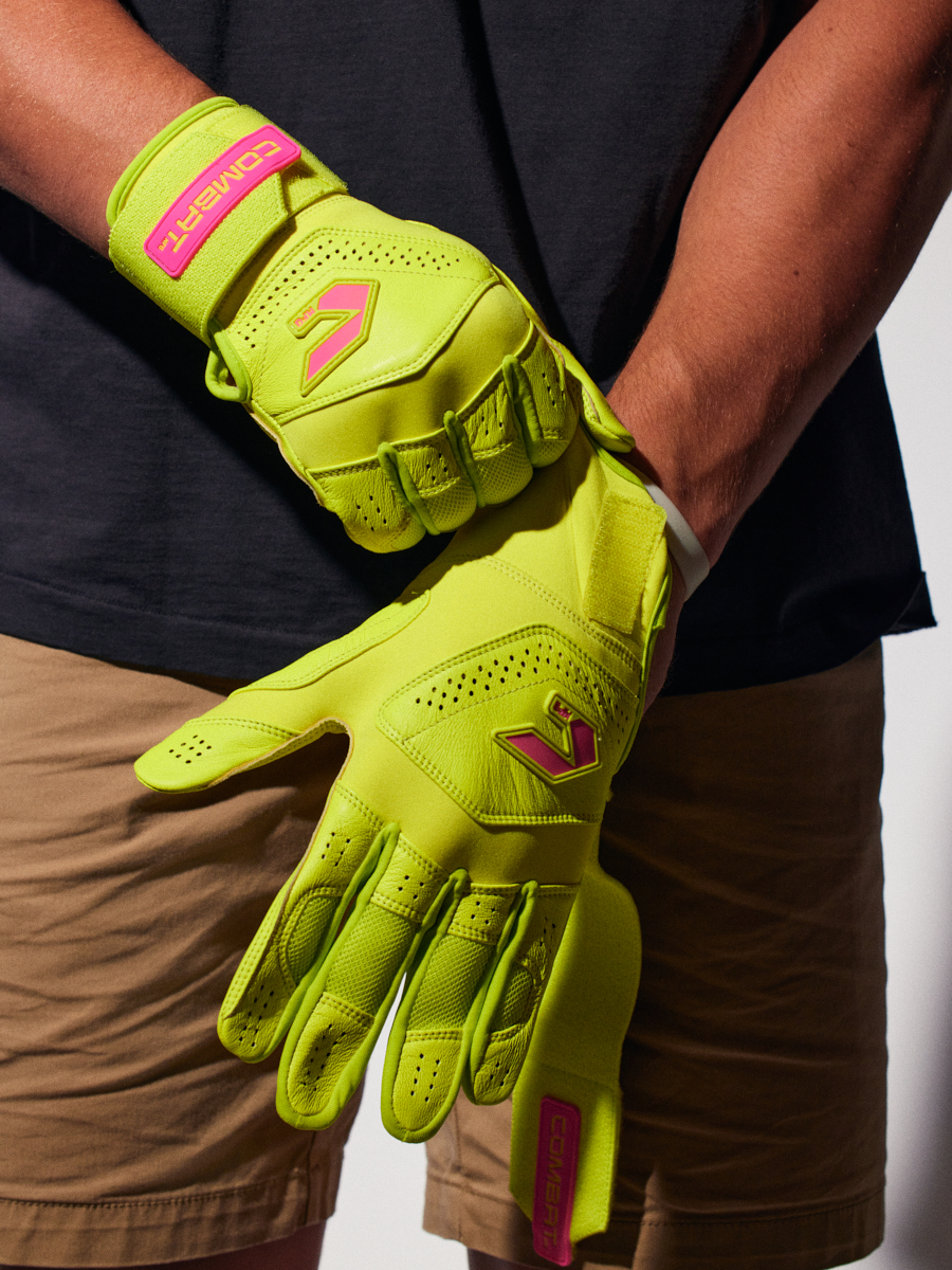 COMBAT MFG Long Strap Batting Gloves, Lemonade Blitz