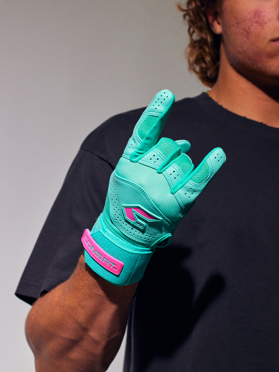 COMBAT MFG Long Strap Batting Gloves, Mint Militia